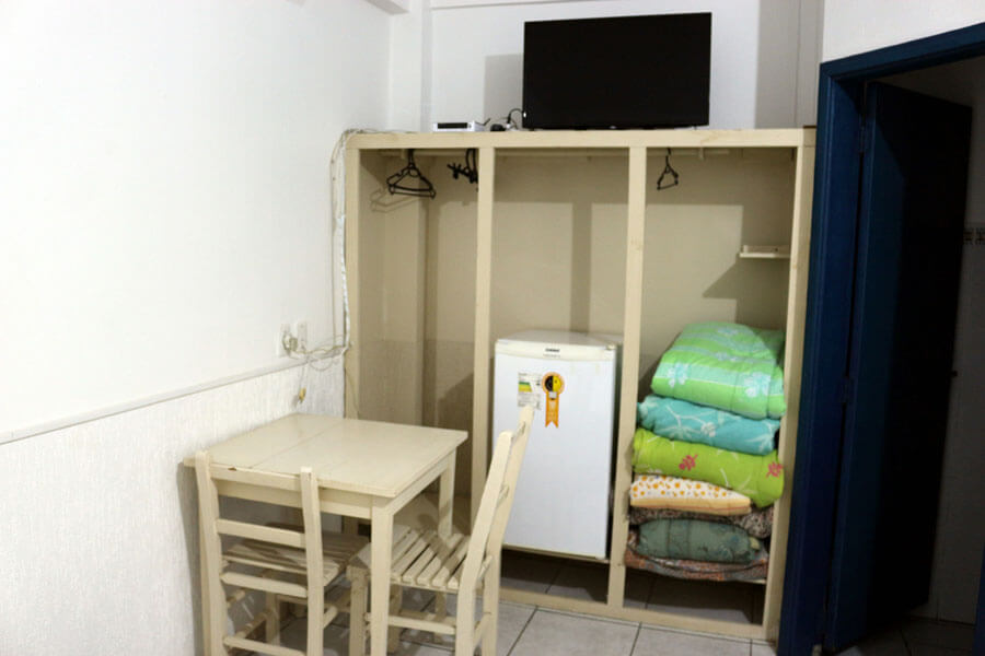 Hospedagem confortável e com preço acessível. Oferece todos os serviços básicos e móveis padrão, como cama, escrivaninha, armário, luminária, televisão e telefone. Conta também com um banheiro completo e comodidades como toalha e sabonete.